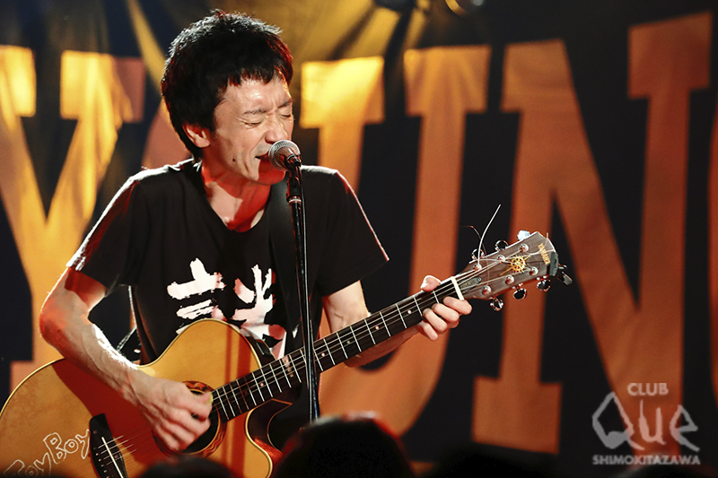 大木温之による一人ピーズは、アコギを抱え弾き語り形式でのライヴ。クラヤマから“ハルさんです!”と紹介されると“ヘーイ! どうも~”と軽く挨拶し「氷屋マイド」からスタート。 “くそ暑いなかどうも~! クラヤマに会いに!”とマイペースな語り口で「生きのばし」、「反応ゼロ」と次々と演奏していく。手拍子も起きても盛り上がりは増すなか、「グッタリしたいぜ」や「でいーね」と残暑の厳しいいまの時期にぴったりな選曲だ。6月の武道館公演が記憶に新しいTheピーズだが、持ち時間の30分を目一杯つかい選りすぐりの10曲をプレイ。超濃密なライヴを届けた。