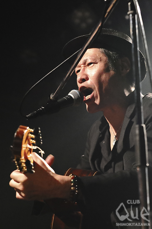 トリを飾るのは、武藤昭平withウエノコウジ。酒を片手に良い感じのテンションで2人は楽器を抱えると“俺たちさ、もう50前なんだけど、今日の出演者だと若手だよ?(笑)なのに何で俺らが最後かって? 人気だからとかじゃなくて、時間を守らないから!(笑)”と、飾らないトークから始まり、“さぁ、これから打ち上げに突入しま~す” と「レッツ・ブーズ・イット」から演奏を始める。新曲「ウェーブ」を交えつつ、「サルー」では、その名の通り掛け声とともに乾杯! (サルー:スペイン語で乾杯の掛け声として使われる)ラテン系の情感溢れるグルーヴで魅了し、ラストは「アミーガアミーゴ」。武藤のパーカッシヴなギターソロで、ヴォルテージはMAXに達した。