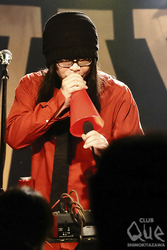 続いては、水戸華之介と内田雄一郎(筋肉少女帯)によるZun-Doco Machine 。内田がDJを務め、水戸がロック炸裂の歌声を届けるテクノポップユニットで、ライヴは今日で4回目! “みんなもどう盛り上がったらいいのか、わからないでしょう? でも、俺たちも正解がわかっていません(笑)”と笑い飛ばす。やはりテクノポップでも2人の軸はブレずにロックだった。「Romanticが止まらない」(C-C-B)など盛り込み、ラストは水戸華之介&3-10chainの「アストロボーイアストロガール」で、ロックモード全開のコール&レスポンスで盛り上げた。