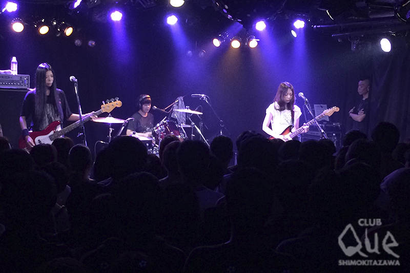 下北沢CLUB Queの23周年記念イベント9日目は、noodlesのニューアルバム『Metaltic Nocturne』のリリースツアーファイナル。新作の1曲目でもある「Heart Bop」でライブはスタート。Pixiesなどのオルタナティブロックを彷彿とさせる、切なくうねるグルーヴはこの日も健在。荒削りながらも憂いを帯びたメロディラインは問答無用で胸を熱くする。中盤では、新作より「wall flower」、「I am me」、「right hand arrow」と、ミドルナンバーが展開されていく。メランコリックな曲調とYOKOの甘く色っぽい歌声がシナジーを生み、胸をギュッと締め付ける。とりわけすごいのが、「かわいい~」と歓声を上げるファンがいる横で、拳を突き上げ一心不乱に盛り上がるファンもいるということ。歪ませたギターのサウンドに潜む切なさ。キュートな見た目や甘い歌声に反して、アンニュイでクールなプレイスタイル。観客が両極端な盛り上がりを見せるのは、アンビバレンツな魅力を持つnoodlesだからこそだ。