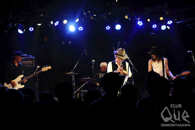 続いてこだま和文(Tp)、チャッピー(Dr.Vo)、川上シゲ(Ba)、内藤幸也(Gu)からなるロックバンド"THE FRUIT CAKES"はこの日のために25分間だけの特別新バンドとして登場。終盤、内藤幸也の男らしいテレキャスターがワンコードを鳴らせると狼煙のようでもあり、夕日の中煙突から立ち上る紅い煙のような音色でこだま和文のトランペットが独奏、My Wayのメロディが一旦会場に響き渡るが余韻を切り裂くように川上シゲのブリブリに歪んだベースとチャッピーのビートが轟く、色気たっぷりのMy WayはパンクVerでライブを閉めた。