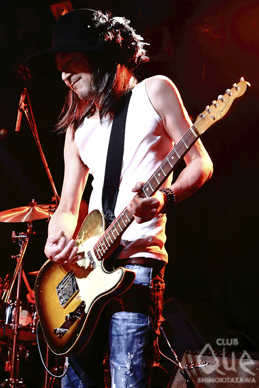 1組目は、杉原徹(Vo.Ag)、金子利昭(Ag)、鹿島達也(Ba)の3人での演奏で始まった。歌の隙間にするりと音が入り込み、自然体から発せられるグルーブにあっという間に虜にさせられてしまった。そうそうたるミュージシャンたちが次々に繰り広げる鳥肌の立つようなプレイは曲が終わるごとに湧き上がる密度の高い声援からも感じることができた。