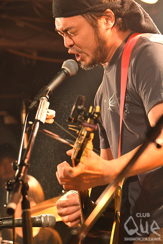 そんな中、血管が切れそうな凄みで魅せたのは、ミジンコの歌に置き換えた竹原流「Amazing Grace」の最後のフレーズ。聴きながら、自分の親不孝を顧みて涙するほど心が揺さぶられた。そしてドラマ『バイプレイヤーズ』の主題歌「Forever Young」を聴いて、大杉漣さんを思ってしんみりとした。竹原は久しぶりのQueのライブを、北海道から上京してすぐ、下北沢周辺での“野狐禅”のライブ活動で悔しい想いをした当時を思い出し、甘酸っぱい気持ちになったと語った。「どーん! とやってこい」「み~んなやってるか!」などの歌詞に前向きに背中を押され、「よー、そこの若いの」では観客も共に歌い、歓声を上げて盛り上がった。