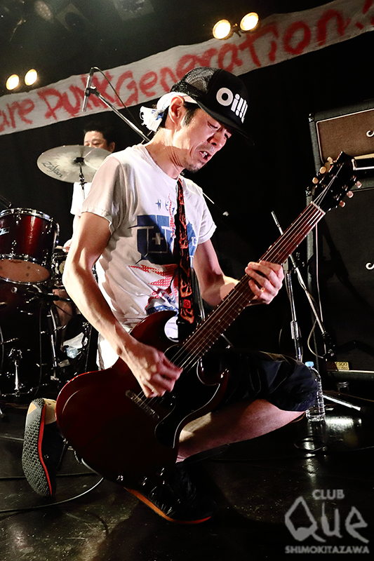 画鋲のメンバーも入り混じってのアンコールで頂点に達した盛り上がりから出演者たちがステージ袖へと消えていく中"TH eCOMMONS"のボーカリスト愚麗威凄(グレイス)が放った一言、「CLUB Que、オバQ」はオーディエンス全員を爆笑させる締めの言葉となった。フロアでは「なんだよクラブキュウ、オバキュウって!!」っと各々ツッコミを入れつつ最高の夜になったと確認しあっていました。