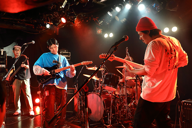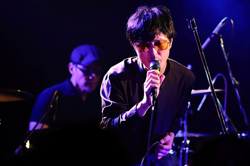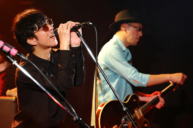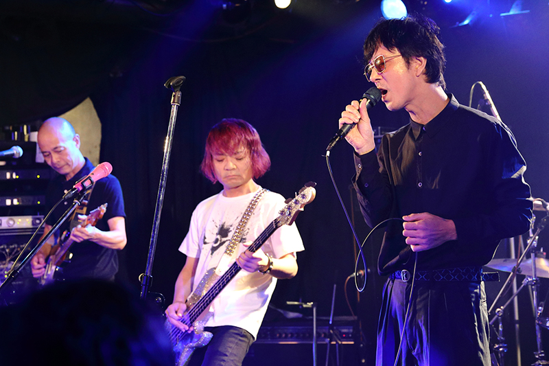 オープニングアクトを務めたWOOMANは、ドラム、ベースが穏やかに鳴り始め「STILL INSIDE」から幕を開ける。60sサイケ~80sパンク、ロックが交わり合うサウンドはクールな印象が全面にありつつ、どこかセンチメントな哀愁漂うメロディが胸をくすぐる。言うまでもないが彼らが出演バンドのなかでは若手で、序盤は観客も様子をうかがう雰囲気だったが、歯切れ良いギターリフから「NO TROUBLE」へと続くと惹き合うように盛り上がりを見せ、ラストの「WANTED」では、会場の空気もばっちりで、この日に相応しいライヴとなった。