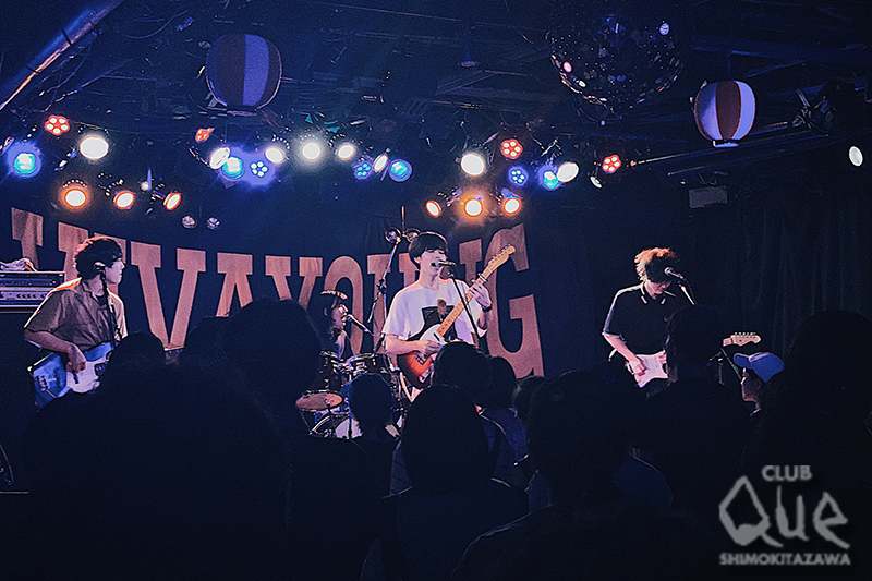 4日目を迎えたVIVA YOUNG。トップバッターは、VIVA YOUNG開始当初から出演のワタナベイビー。田中貴(サニーデイ・サービス)、オータコージを迎えたワタナベイビーBANDSETのステージは、最新作『GOLDEN BABY』の楽曲から「キミやせたね」、中学生の頃に”官能的な曲を作ってみて”と言われ作ったという「二人でナポリタンを」など当時のエピソードやデモ音源時代のことを振り返りながら演奏していく。アルバムを引っさげてのツアーも各所まわっていた3人は和気藹々といった雰囲気で、息はバッチリで特別に演奏された「い・け・な・い ルージュマジック」(忌野清志郎+坂本龍一)のカバーではサビの部分を“ワタナベイベー”と言い換えてシンガロング。観客も交えて盛り上がった。そしてワタナベイビーが自身の愛娘誕生から生まれた「育児勉強中」と、暖かなユーモア漂うナンバーを届けた。