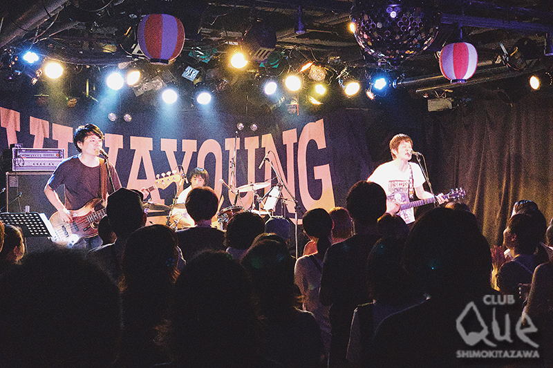 トリを飾ったThe Songbardsは、「青の旅」から美しいメロディとコーラスワークを響かせて惹き込んでいくと、軽快なメロディが夏にぴったりの「雨に唄えば」と続き四季の表情を等身大のメッセージに重ね合わせたナンバーを演奏していく。先ほどのステージで堂島が“The Songbardsは、アラバキで初めて観てめちゃくちゃ良くて思わず声をかけちゃった”と話しており、先輩からも熱視線を浴びている彼らだが“今日は最初、緊張していました。ワタナベイビーさんも堂島さんも僕ら世代にとっては『こち亀』とかアニメ主題歌で知っていた存在なので”と松原有志(Gu. Vo)。そんな緊張感から助けてくれたのも先にステージに立った2人の音楽だったといい、時折ににこやかな表情を見せながらライヴを進行する。最後は軽やかなビートとキャッチーなメロディの「太陽の憂鬱」を演奏して締めくくった。朗らかでハッピーな気持ちになれる、素敵なスリーマンだった。