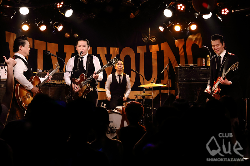 最後は、ロックンロールで踊りまくって終わりましょう! とクラヤマが意気込み、盟友のTHE NEATBEATSを呼び込みステージが幕を明けると痛快のロックンロールに、オーディエンスも待ってました! と言わんばかりに踊りまくり! ラストに相応しい盛り上がりのなか加速させるように「TWISTIN' TIME WITH YOU」、「BYE BYE VERY GOOD」と、間違いなしのナンバーを畳み掛ける。この日の THE NEATBEATSは、ライヴ4daysの2日目。翌日は大阪、そしてすぐに帰京して明後日は東京でライヴするという強行スケジュールということで“俺たちのライヴスケジュールがVIVA YOUNG!や!”と、キレッキレのトークで笑いをかましていた。本編からそのままアンコールへと続行して、演奏もトークもみっちり盛り込みつつ計18曲を余すところなくガッツリ演奏するのはさすが。3組のロックが奏でる素晴らしい夜となった。