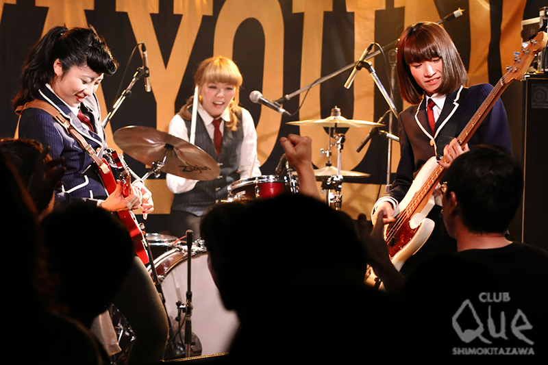 お次は今年で3年目の出演であり、もはやVIVA YOUNG!に欠かせない存在といっても過言ではないザ・ステファニーズ。オールドスクールなロックンロールを軸にしつつも、女性らしい華やかさのある彼女たちのステージは、会場の空気を明るく染める。MITCHY(Vo.Dr)がボーカルを取る「ワイリーモンキーは」では、クールな雰囲気もありつつパワフルな演奏で魅了する。MCでは、クラヤマを慕うSHIRO(Vo.Gu)は、VIVA YOUNG!を続けられてきたことの凄さやこれからもイベントが続いてほしいと感謝の気持ちを込めて話していた。ラストは彼女たちの大切な曲であり想いのこもった「テディ」で、やさしく温かな歌声を届けた。