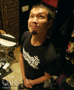今月は太陽の塔、Unlimited Broadcastを通って、今はメンバーを毎回変えるバンド(本人はソロ活動というんやけどそこら辺のバンドより、よっぽどバンドっぽいんや)。今回は原始ROCK、無限放送の井垣の紹介や。まず影響を受けたのが、子供バンド、どんと、ピートタウンゼント、アンガスヤングという事やから、彼のアグレッシブでハードなパフォーマンスの根っこが見えとるな。「とにかく身体全体で音楽を表現する人に憧れてたからかなあ、テンション上がると"お~"ってなるし、身体動かしてるとテンションが上がる」。しかもギタリストなのに切れるまで弦を変えへんという不届き者なんやけど、ちゃんとした理由があるで。「とにかくよく切る。ギター始めてからだと1000本くらいになるのかなあ?大学時代に観た憂歌団が切れたら張り替えてて余裕があってかっこよく思った」。 Unlimited Broadcast時代には年間180本もライヴをやりよってた彼。憧れがライヴバンドで、いいライヴの原点は沢山こなすこと。そやけど良い子は真似しちゃあかんな。彼らはライヴの数以上に激熱な思いを持って生きとるから、ライヴの数ごとに動員が増えていったんやと思うわ。普通のバンドじゃ客が付いてきーへんからな。それによう呑みよんねん。「ビール、発泡酒、日本酒、焼酎、泡盛。酔っ払うと、アルコールが入ってれば何でもいいのさ~!」そんな呑まんでもエエやんて言うたら「楽しいから!盛り上がるから!お酒最高!」アホや。そやけどこいつの頑張りは半端やないで~という話があってな、マラソンしよんねん。何で走んの?って聞いたら「マラソンのしんどさが、ライブのしんどさに似ているから!別に、しんどいところで、ちょっと休んだり手を抜く事は出来るけど、もう駄目って思うところから、もうあの信号まで~みたいに頑張れるか。みたいな感じ!走る事で自信を持ってステージに立つ事が出来る!」とにかくギリギリで真価を発揮する男なんやな。「ライブはスポーツと近い感じがする!ライブ終わった後はへろへろやし、あざだらけやし、血出てるし…」ロックをすごい愛していて、なくてはならないものと思ってるやつだけが言えることや。「そんなわけで同じ好きな音楽があって、同じ夢があって、同じ目標があるから、すぐ知り合いになるし、頑張ってる奴がたくさんおるのはすごい励みになる」だと。最後に今の音楽への向かい方や、それまでとの違いを聞いてみたわ。「頑張ってたんやけど、今考えると太陽の塔はちょっとアイドルやったなあと(笑)。大きな力がかかり、いろんな人からいろんな事を言われて、訳分からない感じになってた。太陽の塔は楽しい明るいバンドだったので、後半から暗い歌がやりたくなってて、アンリミを結成したんやけど、すぐに似合わない事に気づいた。今は明るいとか暗いじじゃなくて、自分と音楽に真面目に向き合って丁寧に救い上げていきたい。年を取るにつれてどんどん音楽が好きに、必要になってきた!すげ~なあ音楽」