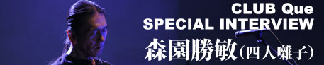 2011年4月のピックアップアーティストは森園勝敏さんbr>CLUB Que店長二位がインビュアーとなり様々なお話を伺っております。充実の超ロングインタビューです!!