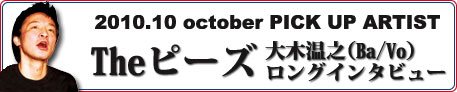 10月のピックアップアーティストは「Theピーズ」!それに伴い、ハルさんにインタビューを敢行!! Que事務所で行われたインタビューが完成しました。超(長)ロングインタビューですよー。