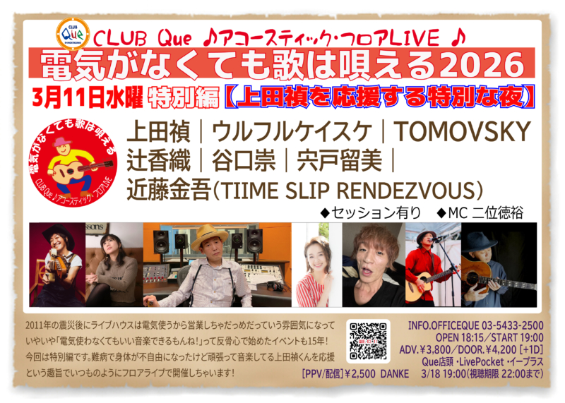 “電気が無くても歌は唄える2026 特別編 「上田禎を応援する特別な夜」”