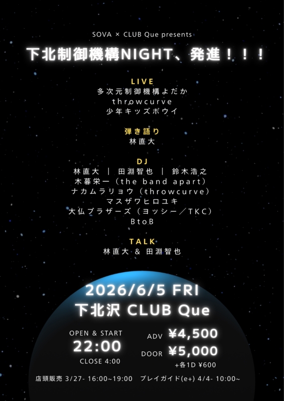“SOVA × CLUBQue presents「下北制御機構NIGHT、発進!!!」”